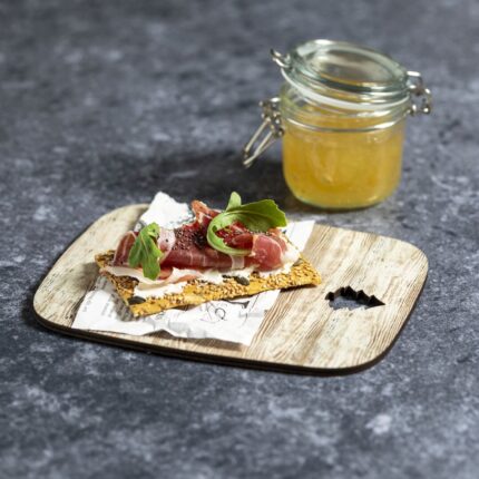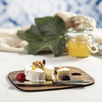 Tabla rectangular de corte y presentación con troquelado de árbol de navidad. Fabricada en madera natural y de original acabado bicolor. Amplia superficie de marcaje y distintivo Made In Europe.