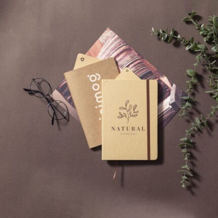 Libreta A5 de línea nature, con tapas blandas en resistente cartón reciclado. 60 hojas lisas de acabado kraft y distintivo reciclado.