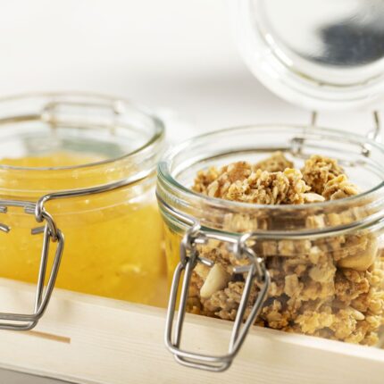 Set de 3 Tarros de Cristal con 230 ml de capacidad. Complementos versátiles para organizar tu casa, cocina, despensa… según tus gustos y necesidades. Fabricados en cristal, y con cierres a presión de acero inoxidable, una combinación de materiales que ofrecen gran resistencia y durabilidad. Presentados en bandeja de madera y en caja individual de diseño eco.