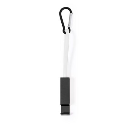 Cable cargador multifunción, fabricado en Aluminio Reciclado y con un ingenioso diseño que permite guardar los cables de carga cómodamente, además de facilitar el transporte. Incluye mosquetón a juego y soporte para smartphone, con conexión Tipo C (entrada y salida) y dual Micro USB / Lightning. En varios colores de acabado metalizado y con logotipo Aluminio Reciclado. Presentado en atractiva bolsa reciclada individual..El Aluminio Reciclado es un material con posibilidades de reciclaje casi infinitas, sin perder sus propiedades originales y consumiendo menos energía en este proceso..Certificación GRS (Global Recycled Standard / Estándar de Reciclaje Global), que garantiza el origen reciclado del material usado para fabricar el producto.