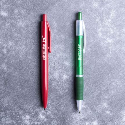 Bolígrafo de mecanismo pulsador con diseño monocolor en variada gama de vivos colores con acabado brillante. Tinta azul.