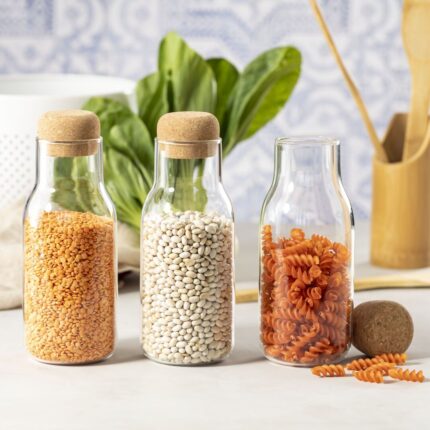 Botella de 800 ml de capacidad y diseño innovador que permite presentar tus bebidas preferidas y mantener ordenados diferentes ingredientes en tu cocina de manera elegante y distinguida. Fabricado en cristal de borosilicato, con tapón de corcho natural. El cristal de borosilicato ofrece una resistencia, estética y durabilidad excepcionales, convirtiéndolo en una idea de regalo perfecta para la conservación y presentación de bebidas, o bien como objeto de decoración. Presentado en caja individual de diseño eco en cartón kraft.