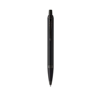 Bolígrafo Parker IM Achromatic, fabricado en acero inox de acabado lacado en negro mate, con mecanismo pulsador y en tinta azul. Con adornos negros e inconfundible clip con la forma icónica en punta de flecha de la marca, también en negro. Un diseño elegante, refinado y de eficacia probada, complementado con una silueta moderna. Presentación en estuche individual negro con logotipo Parker. Parker IM es la gama de entrada al universo Parker, cuidada en cada detalle y pensada para el uso intensivo diario. Con tinta Parker Quink, que ofrece una escritura fluida y fiable sobre el papel.