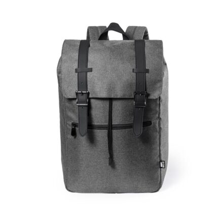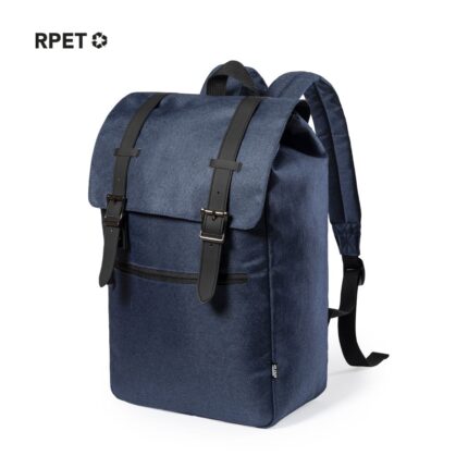 Mochila urban de línea nature, fabricada en resistente poliéster 300D RPET libre de PVC, elaborado a partir de plástico reciclado, para así fomentar la reutilización de residuos plásticos y contribuir a la sostenibilidad del planeta. Bolsillo principal con tiras y cierres de hebilla metálicos. con bolsillo frontal de cremallera y tirador metálico. Interior con bolsillo acolchado para portátil de hasta 15 pulgadas y tablet de hasta 10 pulgadas. Cintas ajustables para hombro acolchadas, con distintivo RPET en etiqueta exterior.