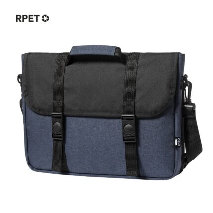 Portadocumentos de línea nature y en resistente poliéster 600D RPET reciclado y libre de PVC, fruto de la combinación del proceso de reciclaje de materiales plásticos junto con la técnica milenaria de fabricación del fieltro, dando como resultado un material de eco-tendencia de origen reciclado. Con acolchado y bolsillo principal con tiras de cierre de hebilla. bolsillo interior de cierre de cremallera y cinta bandolera ajustable para hombro. Con asa de transporte reforzada y accesorio en parte posterior para ajuste en barra de trollley. Resistencia hasta 7kg, con distintivo RPET en etiqueta exterior.