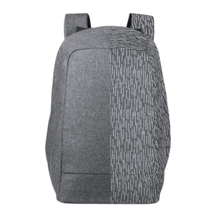 Mochila antirrobo reflectante de alta visibilidad, elaborada en resistente poliéster 600D de calidad premium y acabado en color gris. Fabricada empleando filamentos con gran capacidad para reflejar intensamente la luz, gracias a millones de pigmentos reflectantes y basándose en el principio de la retro-reflexión de la luz, una propiedad de visibilidad nocturna que consiste en la refracción de la luz hacia la fuente de origen de la misma. Resistente a salpicaduras de agua, con bolsillo antirrobo y accesorio para ajuste en trolley. Compartimentos interiores acolchados para ordenador portátil de hasta 15 pulgadas y tablets de hasta 12 pulgadas. Cintas de hombros y espalda acolchadas.