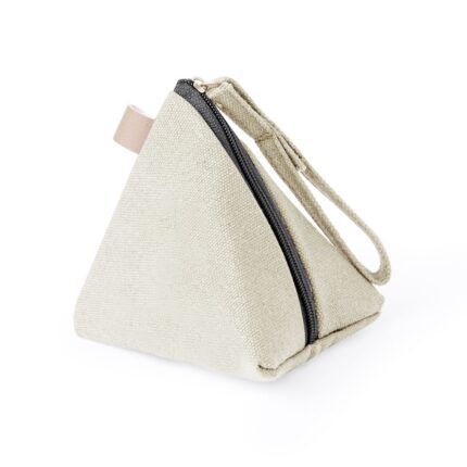 Original monedero en forma de pirámide, fabricado en resistente canvas. Bolsillo con cierre de cremallera y cinta de transporte larga. Disponible en varios colores.