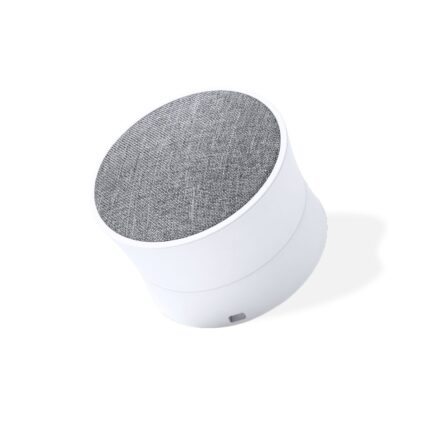 Altavoz Bluetooth® de tamaño compacto y 3W de potencia. Combinación de cuerpo en ABS blanco con rejilla de poliéster en variada gama de colores. Batería de litio de 300mAh, con cable de carga Tipo C incluido. Presentado en caja individual de diseño kraft, con manual de instrucciones en español e inglés.