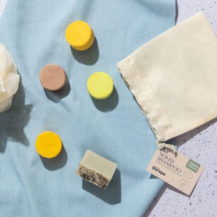 Set vegano de jabón y champú sólidos. Contenido: Pastilla de jabón botánico de 50 gr, elaborada con ingredientes de cultivo ecológico. Con propiedades reguladoras y purificantes. Champú sólido Shikakai de 30 gr, elaborado con una selección de ingredientes activos como la oliva virgen, manteca de karité bio, zanahoria y extractos botánicos de shikakai. Rico en vitamina E, aportando al cabello limpieza, sedosidad y vigor. De agradable fragancia que aporta un estado de placer y bienestar interior. Presentación en bolsa individual de algodón, con cierre de cordón y etiqueta distintiva. Dermatológicamente testado y de fabricación europea. Producto sostenible y 100% vegano, sin ingredientes de procedencia animal. Además, no se han realizado pruebas de estos productos en animales, promoviendo el cuidado y respeto de todos ellos.