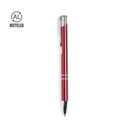 Bolígrafo eco-friendly fabricado en aluminio reciclado. De mecanismo pulsador, con cuerpo disponible en variada gama de colores metalizados y accesorios en cromado. Con clip metálico y distintivo aluminio reciclado en la parte superior del bolígrafo. Cartucho jumbo y tinta azul. El origen del aluminio reciclado se encuentra en la reutilización casi infinita de uno de los materiales con mayor potencial de reciclabilidad sin perder sus propiedades. Esta característica lo convierte en un material eco-friendly de origen reciclado, fácilmente reciclable y de cuyos procesos de tratamiento y desechos para la obtención del material se pueden obtener nuevos recursos reutilizables, consumiendo menos energía en su fabricación, entre otros factores de sostenibilidad. Certificación GRS (Global Recycled Standard / Estándar de Reciclaje Global), que garantiza el origen reciclado del material usado para fabricar el producto.