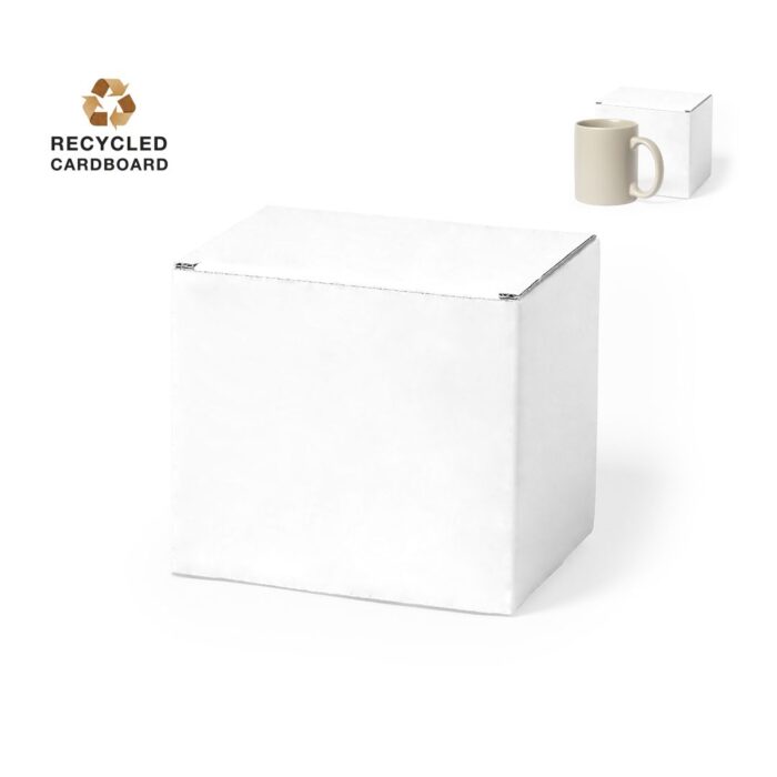 Caja de presentación especialmente diseñada para tazas. Tamaño 12×10,6×9 cm y fabricada en cartón reciclado corrugado de acabado blanco. En línea con la tendencia del mercado hacia la sostenibilidad integral del regalo, ofreciendo soluciones de origen reciclado con el fin de ayudar a la mejora y conservación de nuestro planeta.