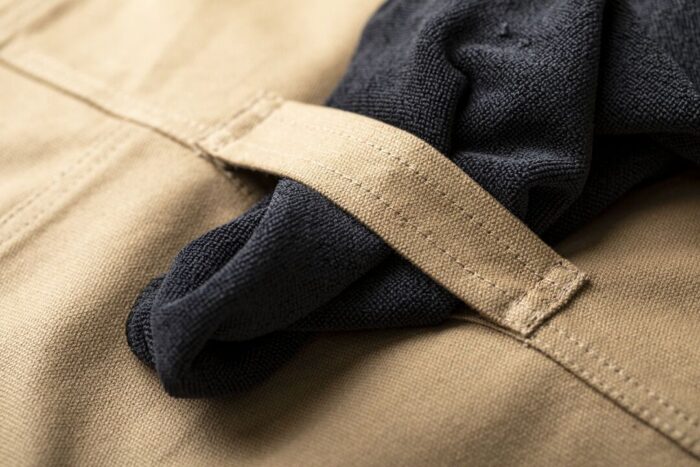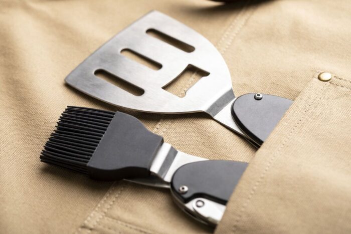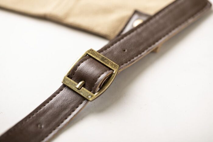 Delantal pro de alta calidad en resistente material 100% algodón canvas de 340g/m2. De corte por debajo de la rodilla, con cintas de cuello y cintura en resistente polipiel con ajuste mediante hebilla y reforzado con remaches metálicos. Incluye multitud de bolsillos para los distintos utensilios, con las costuras reforzadas.