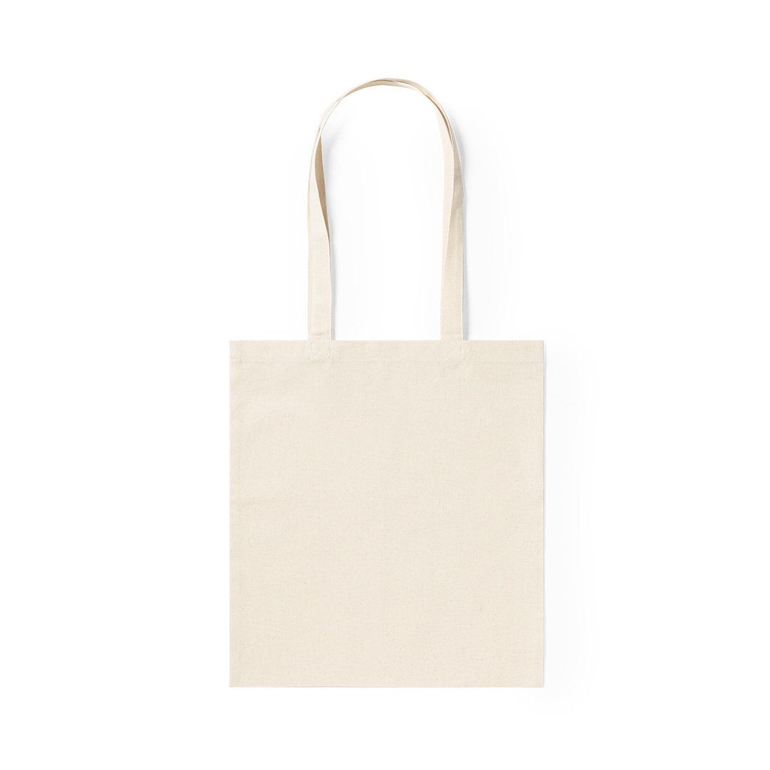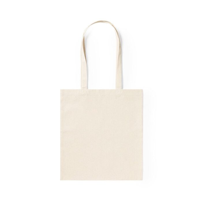 Bolsa en resistente material 100% algodón de 240g/m2 con acabado en color natural. Con asas largas reforzadas de 70cm y acabado cosido. Resistencia hasta 9kg de peso.