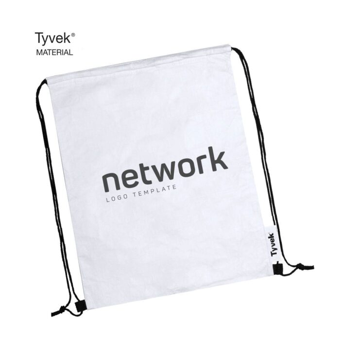 Mochila de cuerdas en suave y ligero material Tyvek®, 100% reciclable y elaborado a partir de fibras de polietileno, que destaca especialmente por su resistencia, flexibilidad, durabilidad y facilidad para la impresión. Con cuerdas autocierre en color negro y esquinas reforzadas. Con distintivo Tyvek® en etiqueta lateral.
