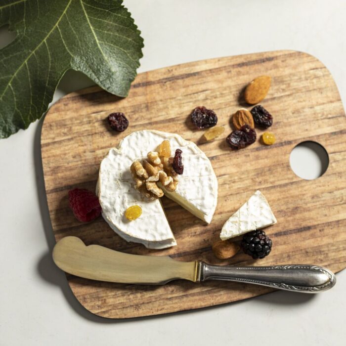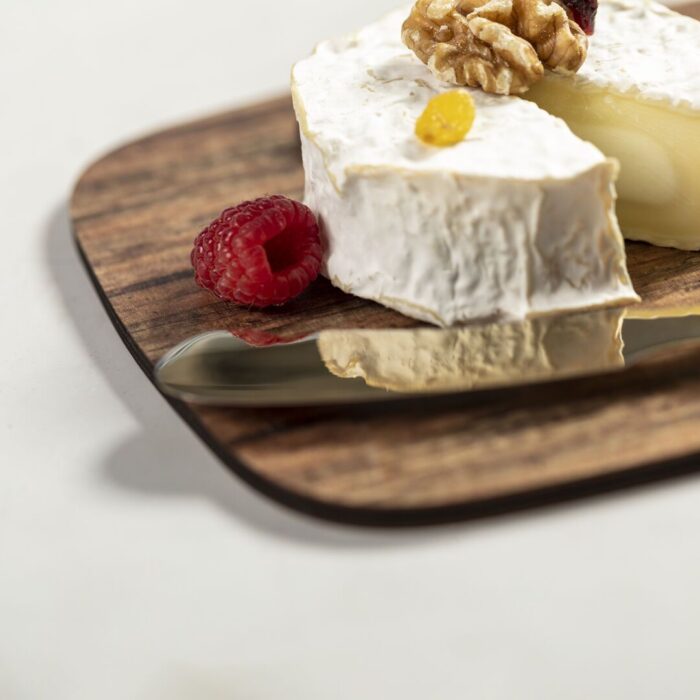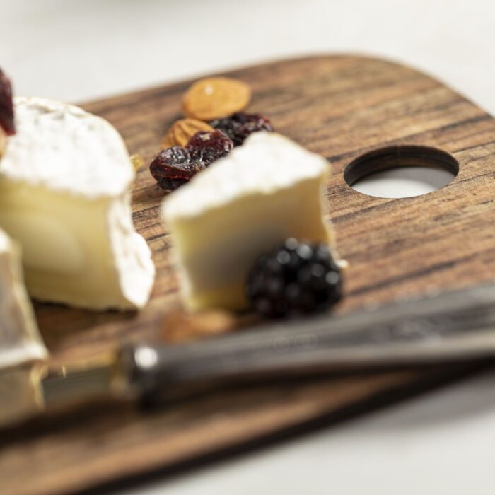 Tabla de corte y presentación fabricada en madera natural, con agujero para colgar. Amplia superficie de marcaje y distintivo Made In Europe.