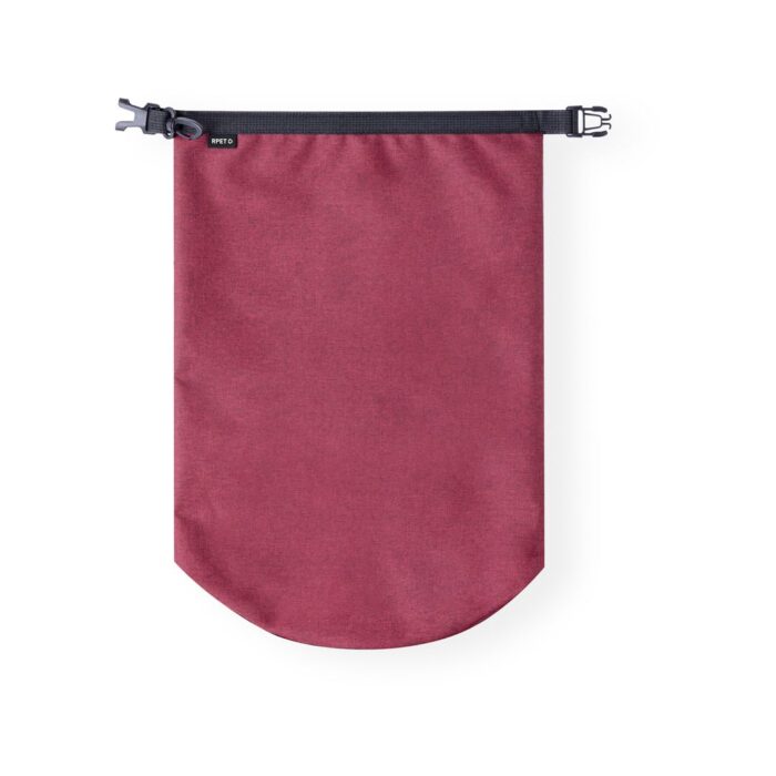 Bolsa impermeable de 5L de capacidad, fabricada en resistente 300D RPET. Cierre de seguridad, asa con hebilla de ajuste y mosquetón incluido. Etiqueta distintiva de RPET en el cierre. Disponible en variada gama de colores bitono. Presentada en bolsa individual reciclada. .El material RPET se elabora a partir de plástico reciclado, para así fomentar la reutilización de residuos plásticos y ayudar a la sostenibilidad del planeta.