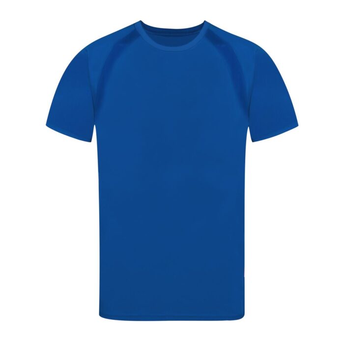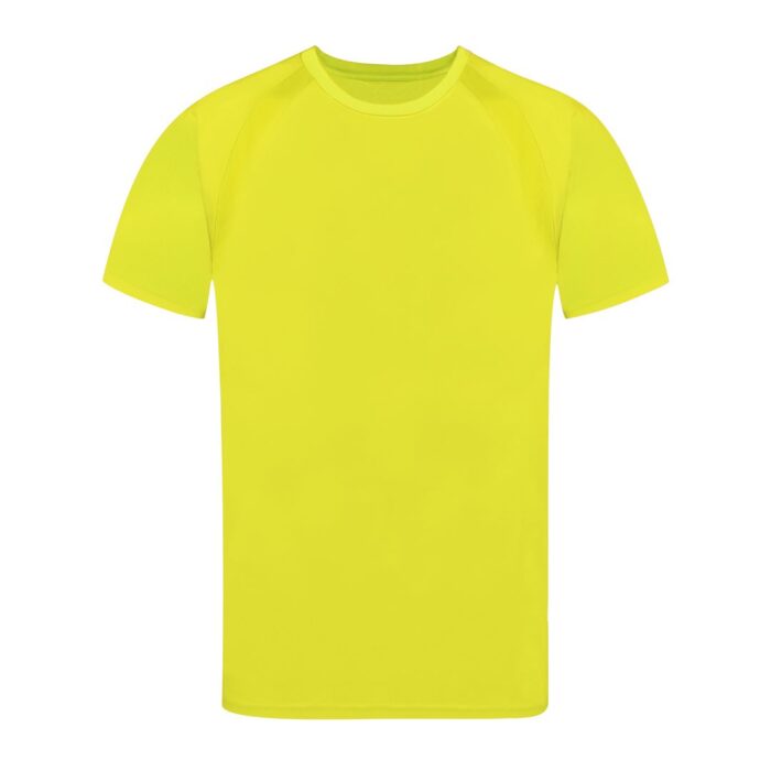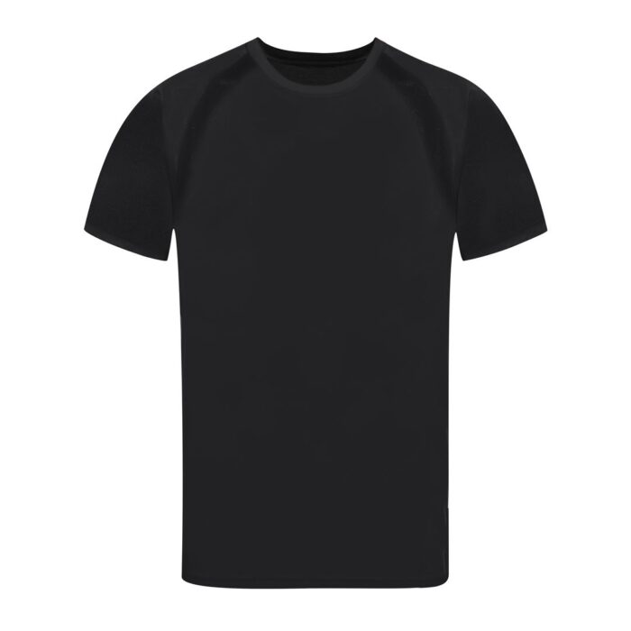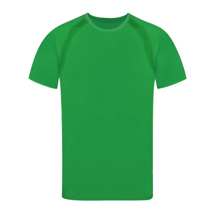Camiseta técnica para adulto en material 100% poliéster transpirable de 135g/m2. Con manga ranglán, cuello redondo y con bandas frontales y laterales en tejido transpirable microperforado. Disponible en tallas S, M, L, XL, XXL.