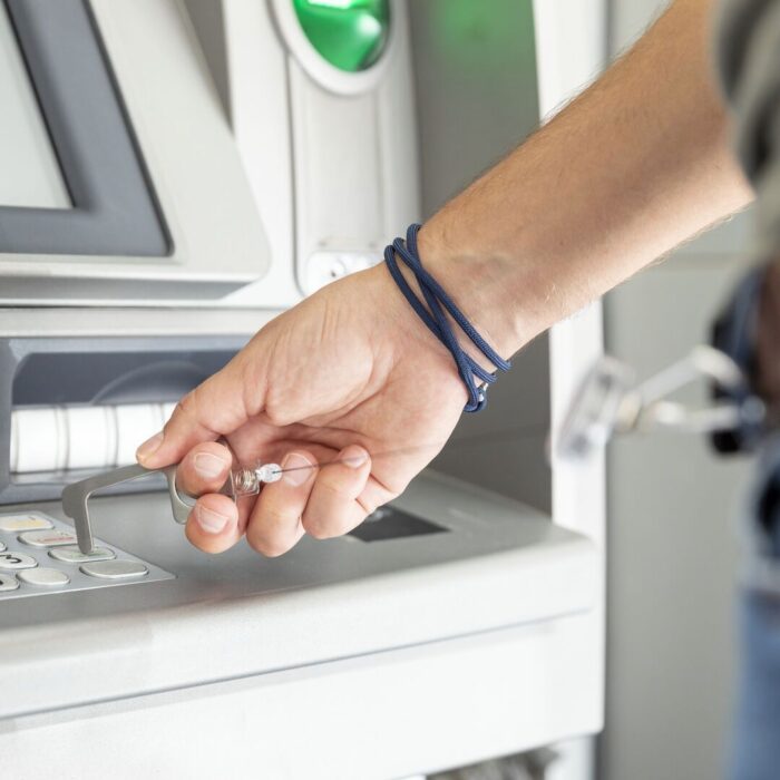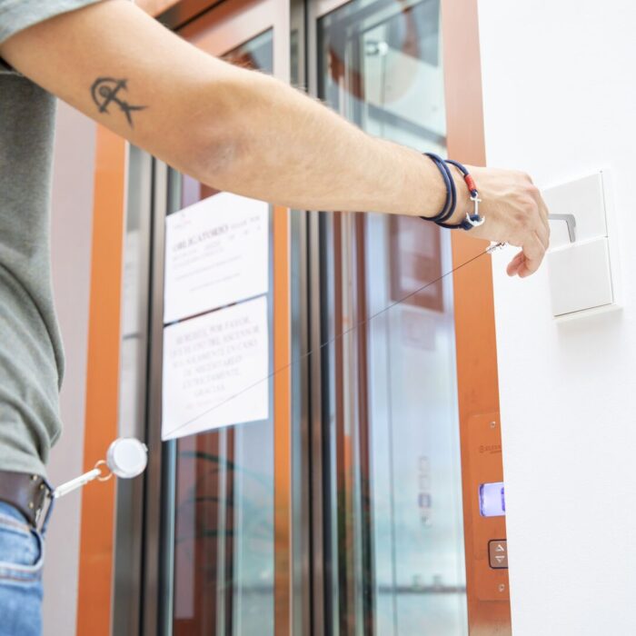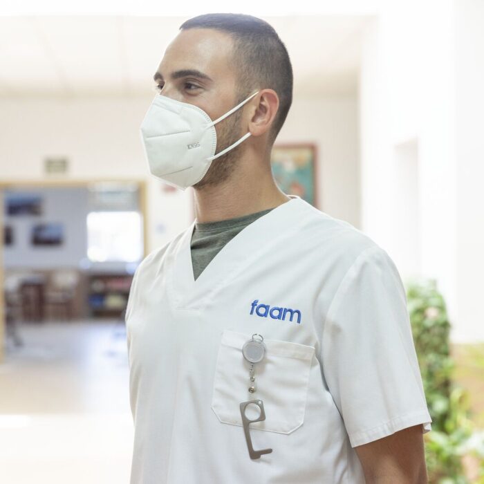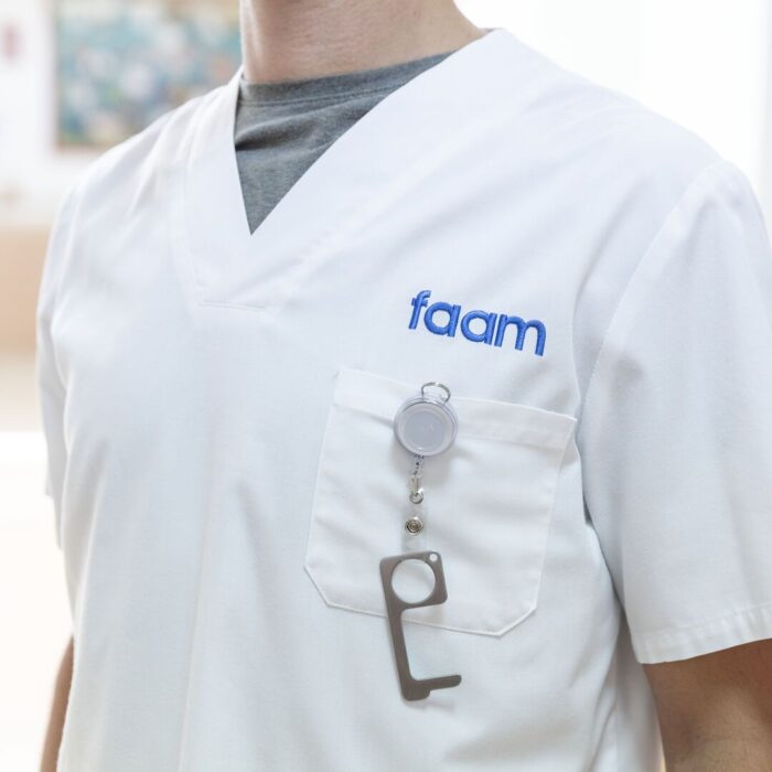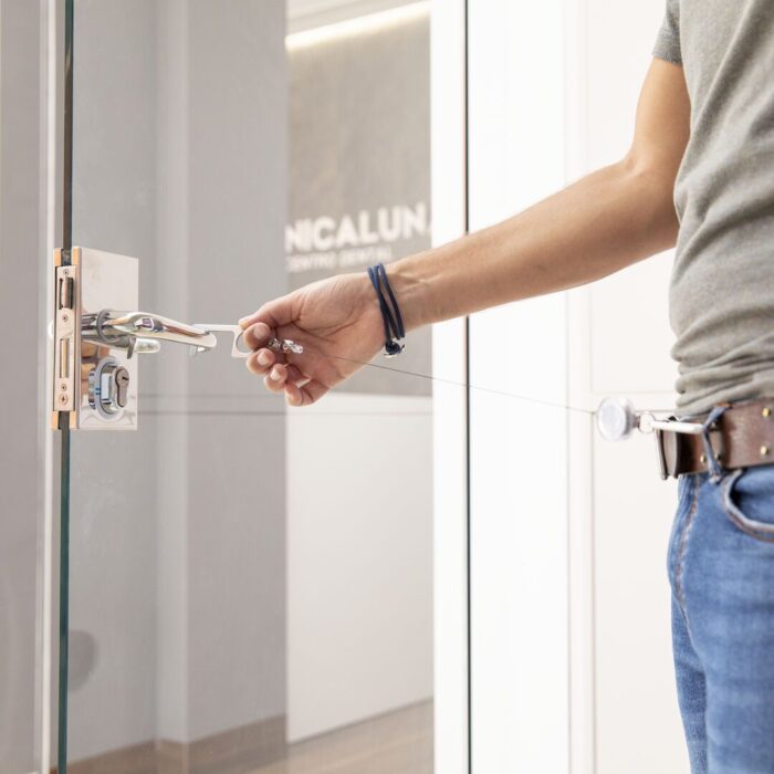 Porta acreditaciones extensible de sobrio diseño, con gancho para colgar la acreditación y mecanismo extensible de hasta 65 cm. Con mosquetón de enganche metálico y amplia superficie de marcaje