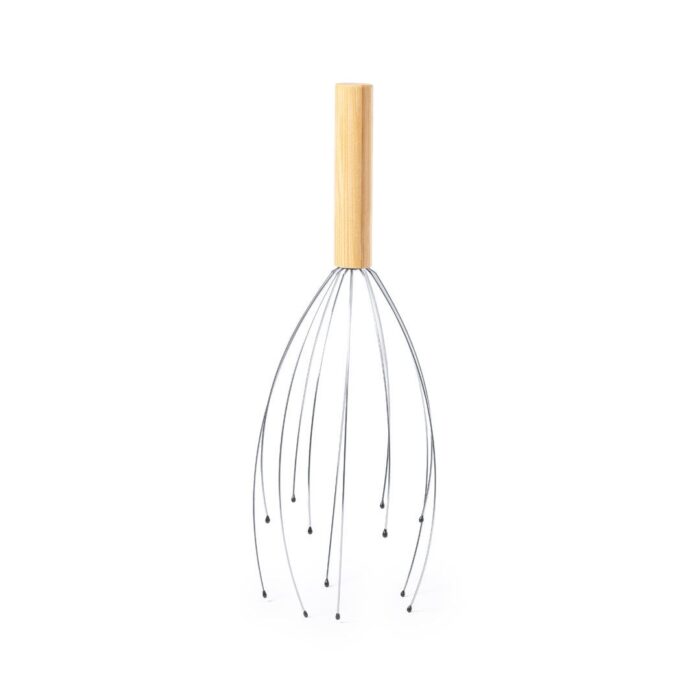 Masajeador de línea nature, con mango en bambú y patas metálicas; con suaves terminaciones de goma y efecto más que relajante. Presentación en caja individual de diseño kraft.