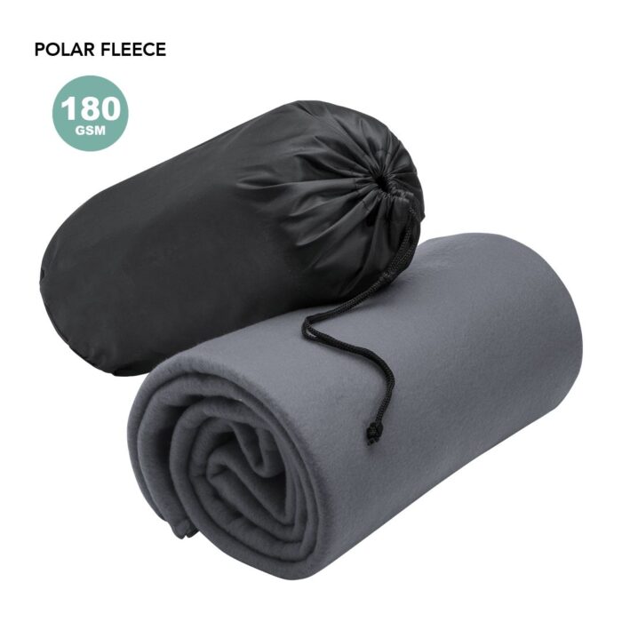 Manta de 120x150cm en variada gama de vivos colores. En material polar fleece de 180g/m2 y con funda de cierre de cordón en suave poliéster.