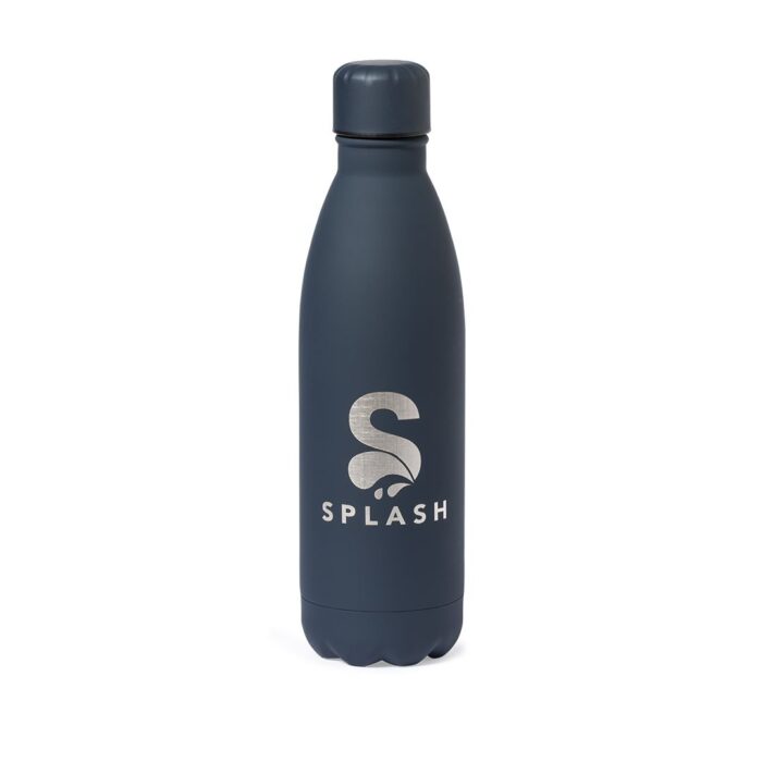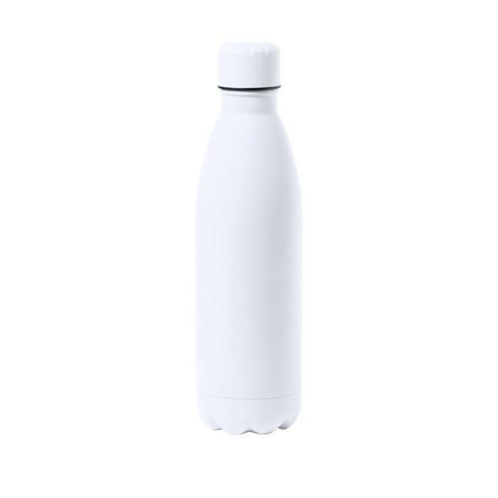 Bidón de 790 ml de capacidad, fabricado en acero inox y acabado con tacto goma, especialmente diseñado para marcaje en láser. Con tapón a rosca a juego, libre de BPA y disponible en variada gama de colores mate. Presentado en caja individual de diseño kraft.