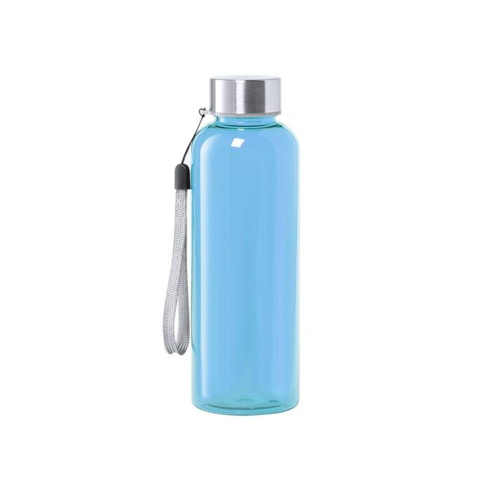 Bidón de 500ml de capacidad. Libre de BPA, con cuerpo fabricado en tritán transparente y de alta resistencia al calor. Tapón a rosca en acero inox, con cordón de transporte. Disponible en variada gama de colores.