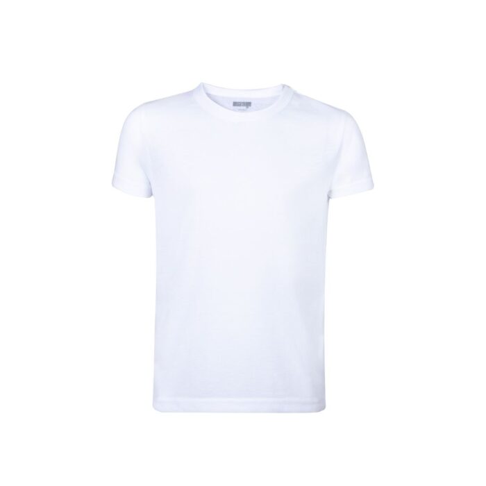 Camiseta para niño en material 100% poliéster transpirable de 140g/m2 con textura de algodón. Especialmente diseñada para marcaje en sublimación y disponible en tallas 4-5, 6-8, 10-12.