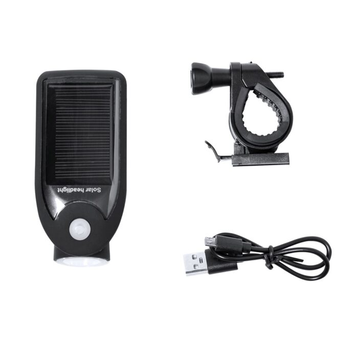 Luz de seguridad para bicicletas con carga solar. Ofrece tres modos de iluminación: uno fijo con intensidad media o alta, e intermitente. Recargable gracias a su batería de 500 mAh de capacidad, con cable de carga incluido. Con accesorio de acople válido para cualquier bicicleta y presentada en caja de diseño kraft.