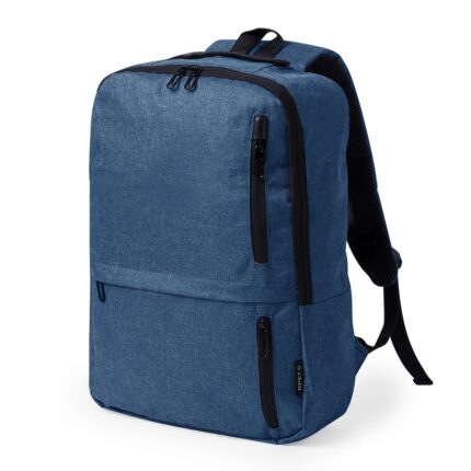 Mochila multifunción fabricada en 300D RPET. Elaborada con poliéster reciclado y resistente al agua, cuenta con una excelente transpirabilidad en la zona trasera, facilitando la disipación del calor gracias a sus cintas y respaldo acolchados. Las cintas anchas están diseñadas para aliviar la presión en los hombros, permitiendo llevar la mochila cómodamente durante largos periodos..Perfecta para cualquier situación por tener múltiples compartimentos: .2 bolsillos frontales. .3 compartimentos grandes centrales, uno de ellos portatodo, un bolsillo central de gran capacidad para guardad ropa y/o complementos con organizador en su interior, y un tercero acolchado, perfecto para llevar portátil de hasta 17,3 pulgadas. .Además, cuenta con 3 apartados especiales, un bolsillo lateral perfecto para tener acceso rápido, bolsillo para calzado en la base con argollas de ventilación, y bolsillo antirrobo en la espalda, además de cable USB. Perfecta para viajes o para el día a día por sus cintas ajustables, adaptándose a todo estilo de vida. Disponible en negro y gris, con logotipo RPET incluido. Presentada individualmente en bolsa reciclada..El material RPET se elabora a partir de plástico reciclado, para así fomentar la reutilización de residuos plásticos y ayudar a la sostenibilidad del planeta.
