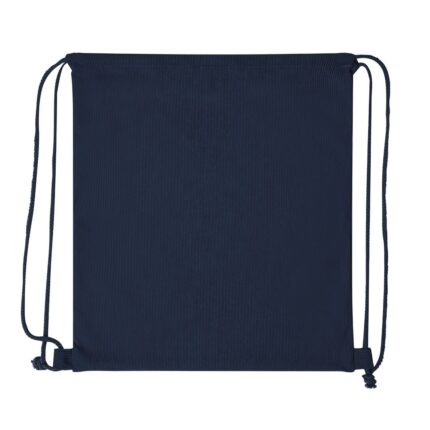 Mochila de cuerdas fabricada en resistente pana de poliéster. De acabado cosido, con cuerdas a juego y refuerzos laterales. Disponible en variada gama de colores.
