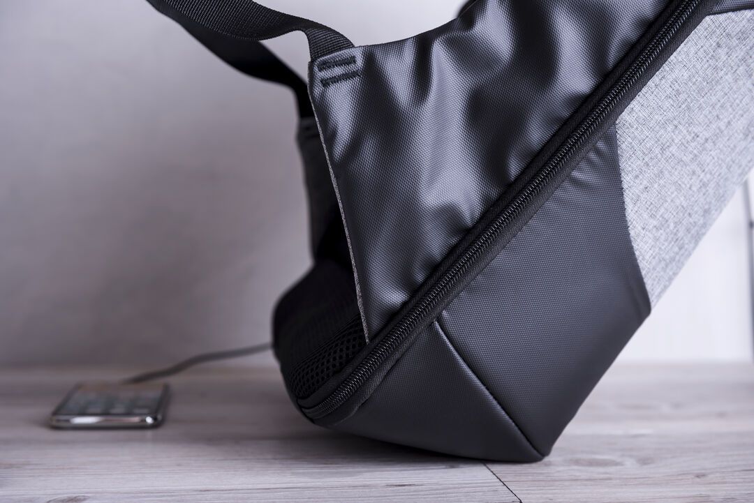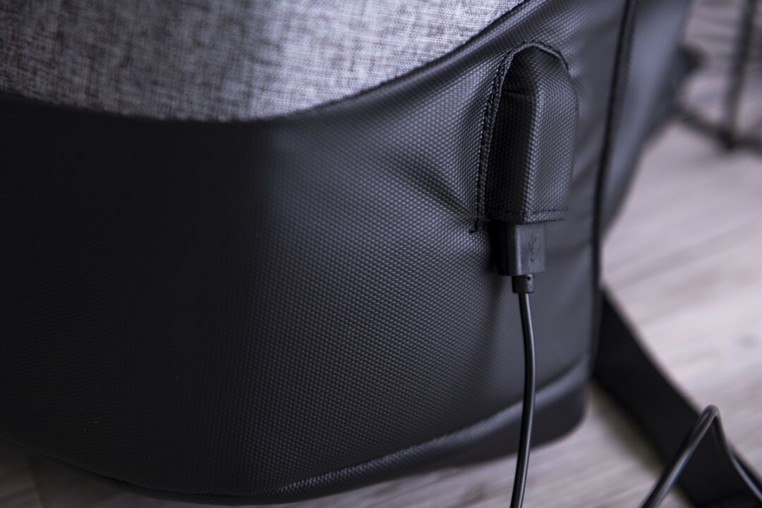 Mochila de negocios antirrobo y repelente al agua en nylon de alta calidad, resistente a cortes y a roces. Con bolsillo antirrobo en la espalda para guardar objetos de valor. Compartimento interior con salida USB para conexión de powerbank -no incluido-. Incluye cable micro USB de 1 metro de largo para total comodidad en la carga de cualquier dispositivo móvil. Bolsillo en cinta derecha con fácil acceso para tarjeta de transporte y otros documentos de uso frecuente. Apertura total 180º para fácil acceso al interior de la mochila. Dos compartimentos interiores independientes y acolchados para ordenador portátil de hasta 15 pulgadas y para tablets de hasta 10 pulgadas. Con multitud de bolsillos interiores y exteriores. Cintas de hombros y espalda con acolchado ergonómico.