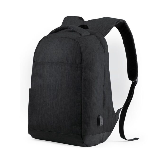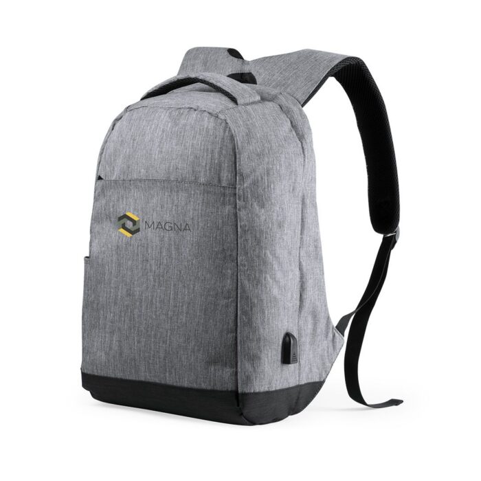 Mochila de negocios antirrobo en resistente poliéster 300D de alta calidad, resistente a cortes y a roces. Disponible en acabados gris y negro. Con bolsillo antirrobo en la espalda para guardar objetos de valor. Compartimento interior con salida USB para conexión de powerbank -no incluido-. Con cremallera de seguridad, dos compartimentos interiores independientes y acolchados para ordenador portátil de hasta 15 pulgadas y para tablets de hasta 10 pulgadas. Con multitud de bolsillos interiores y exteriores. Cintas de hombros y espalda con acolchado ergonómico. Con accesorio para trolley.