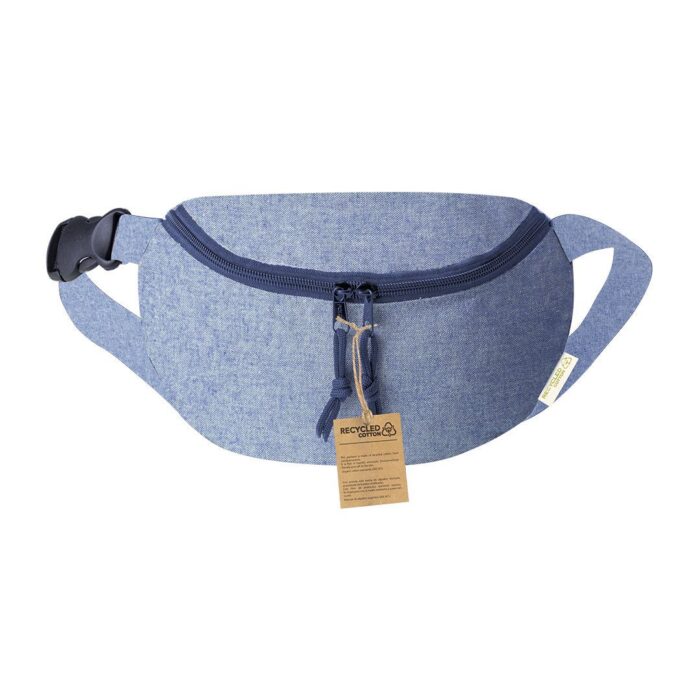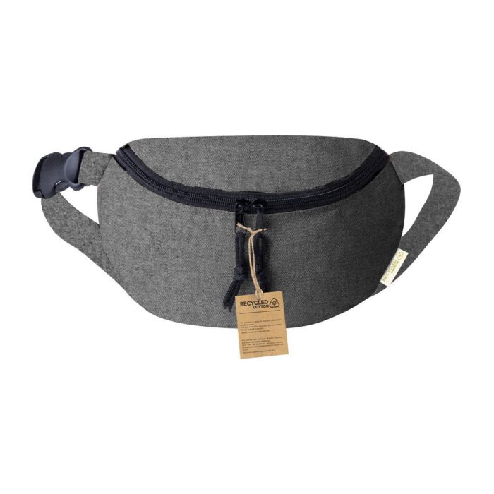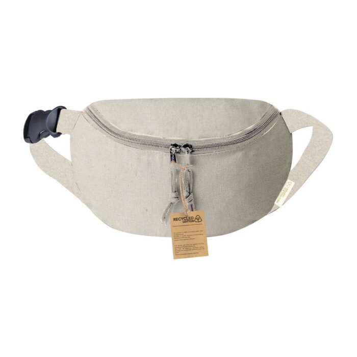 Riñonera fabricada en algodón 100% reciclado GRS de 220g/m2. Cuenta con un bolsillo central con cierre de doble cremallera y una cinta ajustable con cierre de clip. Disponible en una variada gama de colores y con logotipo algodón reciclado en la etiqueta exterior. Disponible certificación GRS (Global Recycled Standard / Estándar de Reciclaje Global), que garantiza el origen reciclado del material usado para fabricar el producto.