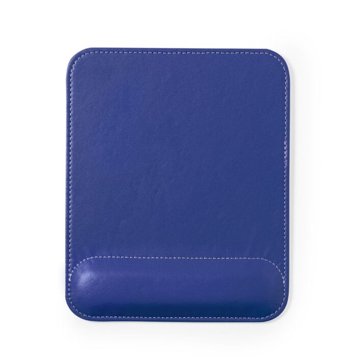 Alfombrilla para ratón fabricada en suave polipiel, con contraste de color blanco en las costuras. Base antideslizante y reposa muñecas acolchado para prevenir el estrés y el dolor en las articulaciones. Presentada en estuche individual.