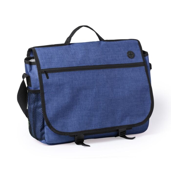 Portadocumentos con solapa de cierre clic ajustable en poliéster 600D, de diseño bicolor en vivos tonos. Con salida de auriculares, bolsillo de cremallera en solapa y bolsillo de redecilla lateral. Con asa reforzada, cinta bandolera ajustable y compartimentos interiores con fundas para bolígrafos y smartphone.