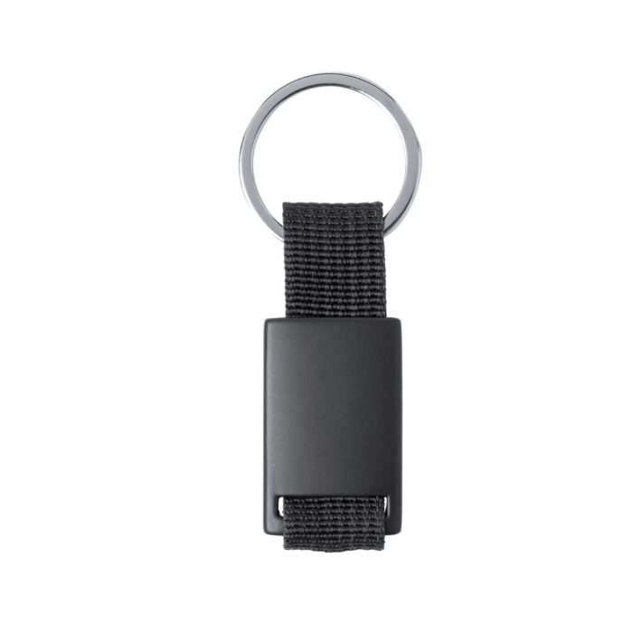Llavero todoterreno de diseño monocromático, con cuerpo acabado en aluminio de vivos colores y resistente cinta de poliéster a juego. Presentado en bolsita individual con cartulina en elegante color gris.