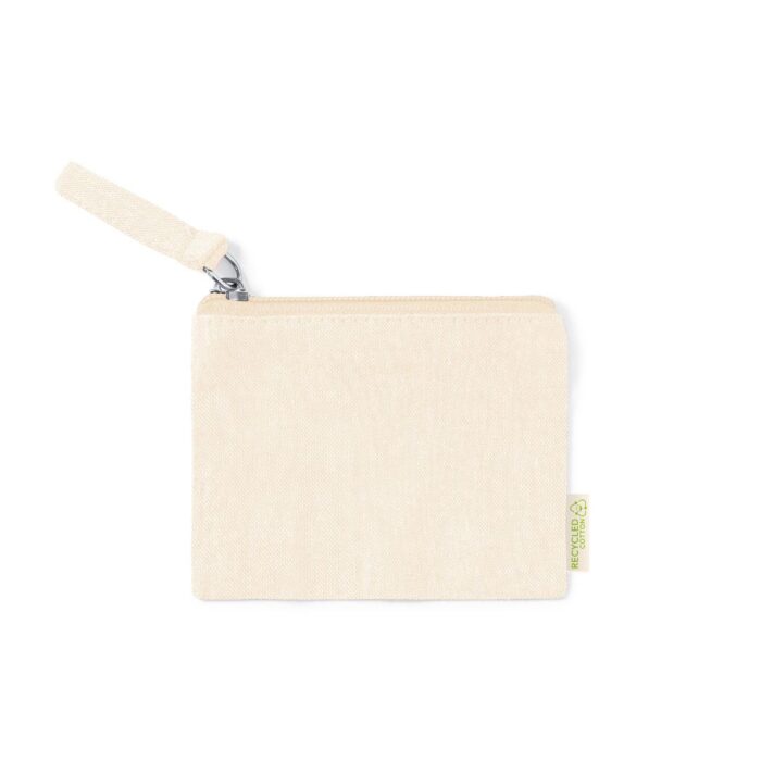 Monedero fabricado en 100% algodón reciclado. Compartimento principal con cierre de cremallera y tirador a juego. Con algodón distintivo reciclado en la etiqueta exterior y disponible en variada gama de colores. Certificación GRS (Global Recycled Standard / Estándar de Reciclaje Global), que garantiza el origen reciclado del material usado para fabricar el producto