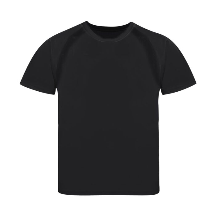 Camiseta técnica para niño en material 100% poliéster transpirable de 135g/m2. Con manga ranglán, cuello redondo y con bandas frontales y laterales en tejido transpirable microperforado. Disponible en tallas 4-5, 6-8, 10-12.