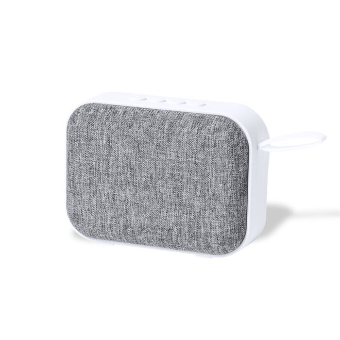 Altavoz de conexión Bluetooth® 5.0 de diseño bicolor, con rejilla de poliéster y asa de transporte a juego en silicona. Ofrece 3W de potencia, tiene función de manos libres y función radio FM. Reproducción mediante USB, ranura para tarjetas micro SD de hasta 32GB de capacidad y entrada auxiliar de línea mediante conexión jack de 3,5mm, con base antideslizante. Compatible con iOS y Android, incluye cable de carga micro USB y además está disponible en una extensa gama de colores. Presentado en atractiva caja de diseño.