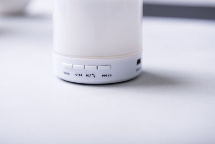 Altavoz de Tecnología Led Inteligente y conexión Bluetooth®. 3W de potencia, con ranura USB para reproducir música desde unidad externa y función manos libres. Ranura para tarjetas micro SD de hasta 32 GB de capacidad, entrada auxiliar de línea mediante conexión jack de 3,5mm y base antideslizante. Radio FM, con luz multicolor, recargable mediante cable USB -incluido- y presentado en una atractiva caja de diseño.