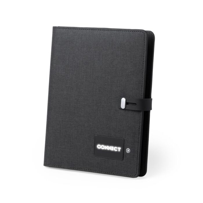 Elegante y práctico organizador en poliéster 300D. Con carga inalámbrica y batería auxiliar de 4.000 mAh de capacidad de carga integrada. Pastilla de marcaje con luz led interior y un recubrimiento exterior especialmente diseñado para marcaje en láser, con el que conseguirá que su publicidad o marca quede iluminada con luz blanca. De sobrio diseño y original cierre, incluye bloc de notas de 64 hojas, soporte para bolígrafo e indicador led de estado de carga. El fácil acceso a la estación de carga mediante cable micro USB -incluido- hacen de este organizador el gadget perfecto para el mundo de los negocios. Las capacidades mostradas en todas nuestras baterías auxiliares externas son reales, incorporando todas ellas baterías de grado A y no recicladas, con una vida útil de al menos 500 ciclos de carga y según normativa CE. Además, están fabricadas conforme a los estándares RoHS y en cumplimiento con los siguientes requisitos de seguridad: Sistema de protección contra sobrecarga del power bank. Sistema de protección contra descarga completa que proporciona una mayor durabilidad del power bank. Sistema de bloqueo para evitar cortocircuitos. Sistema de transferencia de carga constante, acorde con la capacidad del dispositivo de destino.