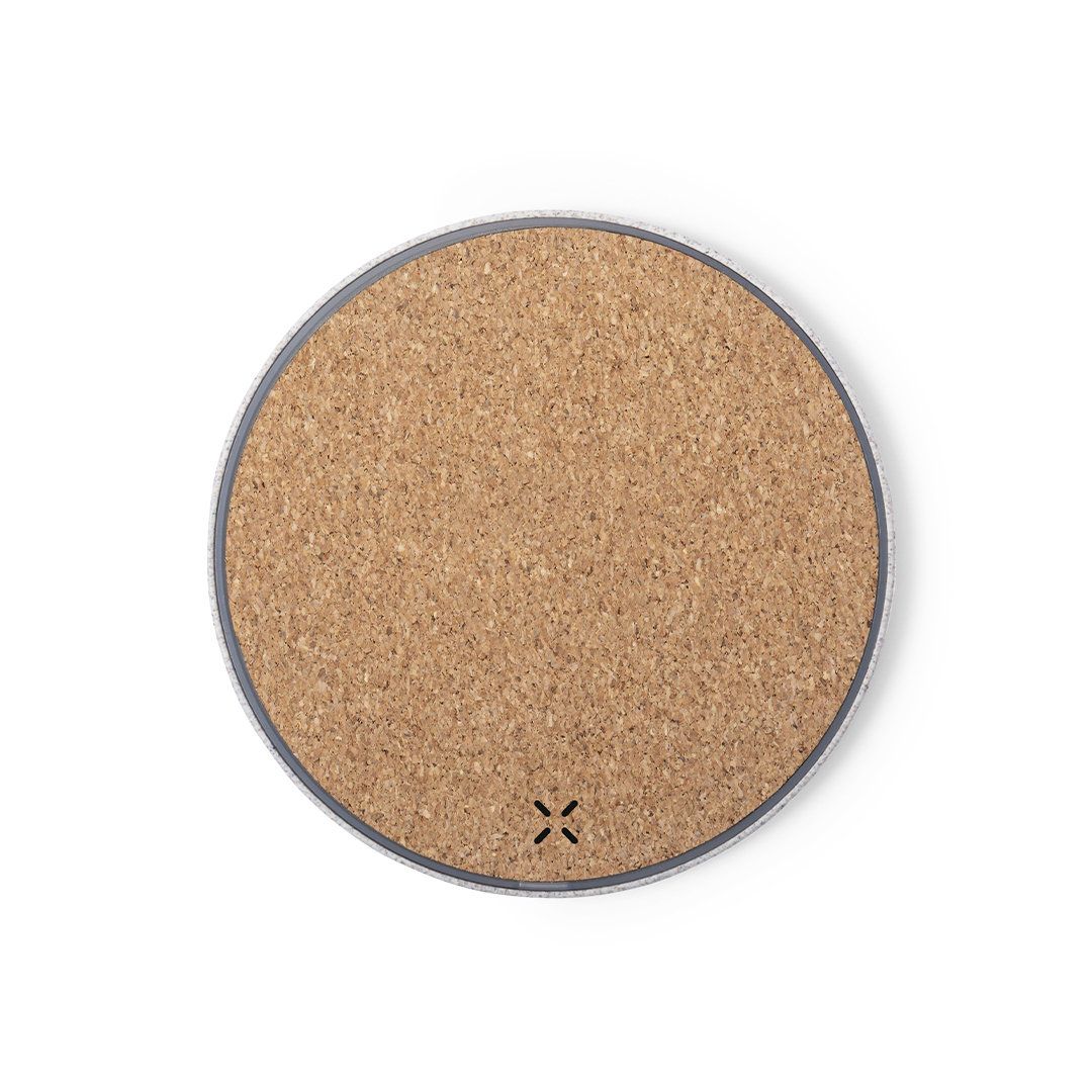 Cargador inalámbrico 5W de línea nature y diseño circular. Carcasa en combinación de materiales corcho natural y caña de trigo. Incluye cable micro USB de 1 metro de largo, con indicador de estado de carga y compatible con dispositivos equipados con tecnología de carga inalámbrica. Amplia superficie de marcaje y presentado en atractiva caja de diseño eco.