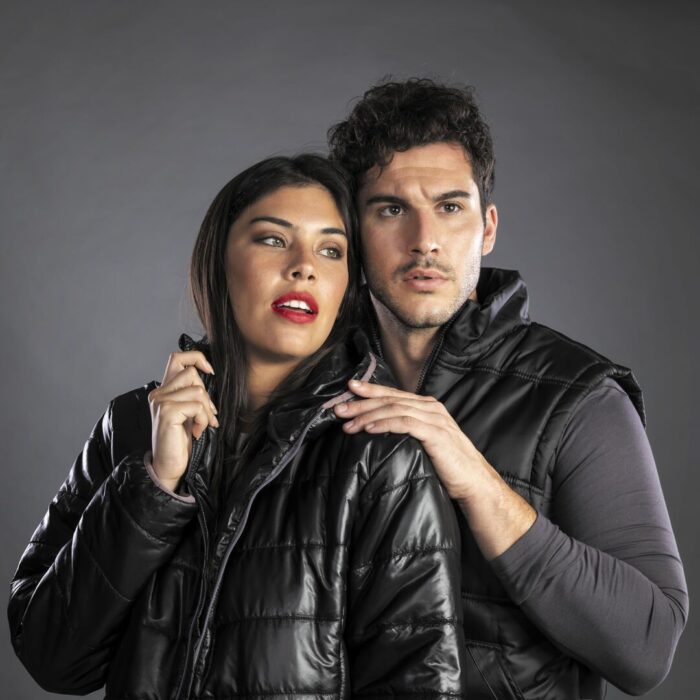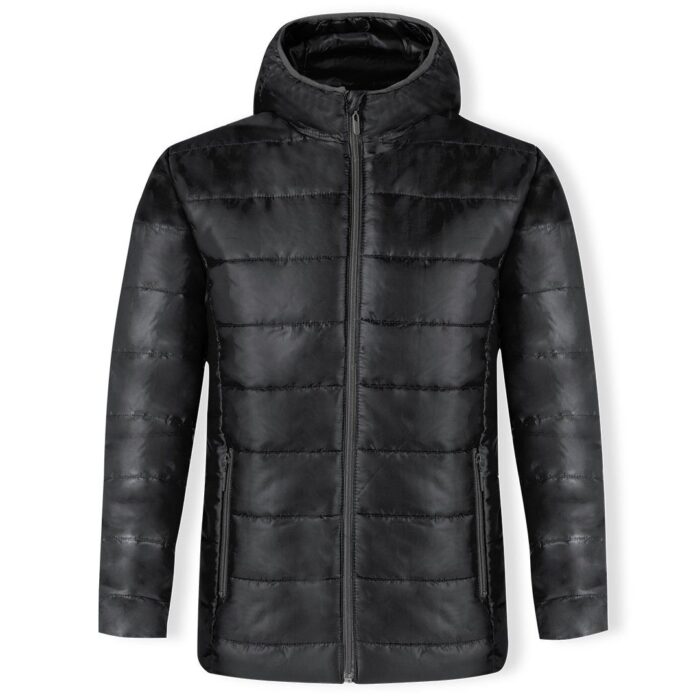 Chaqueta cortavientos impermeable en poliéster de acabado brillante y vivos colores. Con capucha, cierre de cremallera y bolsillos frontales de cremallera. Disponible en tallas M, L, XL, XXL.