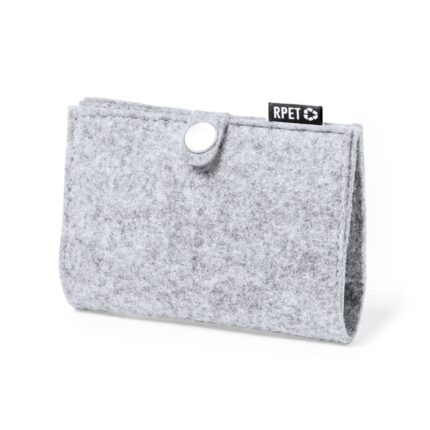 Elegante tarjetero fabricado en resistente fieltro RPET. De acabado cosido y con compartimento con muesca para fácil acceso a las tarjetas. Con distintivo fieltro RPET en la etiqueta exterior. El fieltro RPET es fruto de la combinación del proceso de reciclaje de materiales plásticos junto con la técnica milenaria de fabricación del fieltro, dando como resultado un material de eco-tendencia que, además de ser de origen reciclado, también se convierte en reciclable.