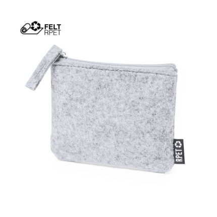 Elegante monedero fabricado en fieltro RPET. Compartimento principal con cierre de cremallera y tirador a juego. Con distintivo fieltro RPET en la etiqueta exterior. El fieltro RPET es fruto de la combinación del proceso de reciclaje de materiales plásticos junto con la técnica milenaria de fabricación del fieltro, dando como resultado un material de eco-tendencia que, además de ser de origen reciclado, también se convierte en reciclable.