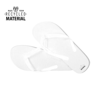 Par de chanclas de línea nature, resistente suela fabricada en EVA reciclado. Con tiras de PVC a juego y disponibles en dos tallas: 36-38 y 42-44. Con distintivo reciclado en talón.