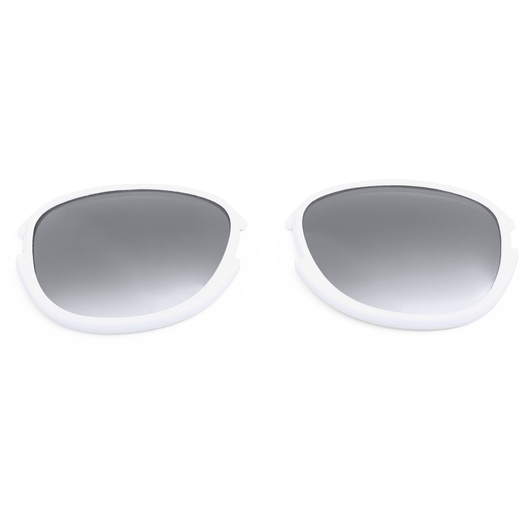 Par de lentes ahumadas con protección UV400 y marco en variada gama de vivos colores. Para combinación con montura de troquelado especial (se vende por separado).